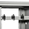 Cable Management Rings (CMR) provide a simple, effective way to secure and organize cables within the enclosure. Their thoughtful design allows cables to be placed into the rings easily while preventing them from slipping out, ensuring clean, orderly routing throughout the rack. The result is a neat, professional cable layout that enhances both serviceability and overall enclosure appearance.