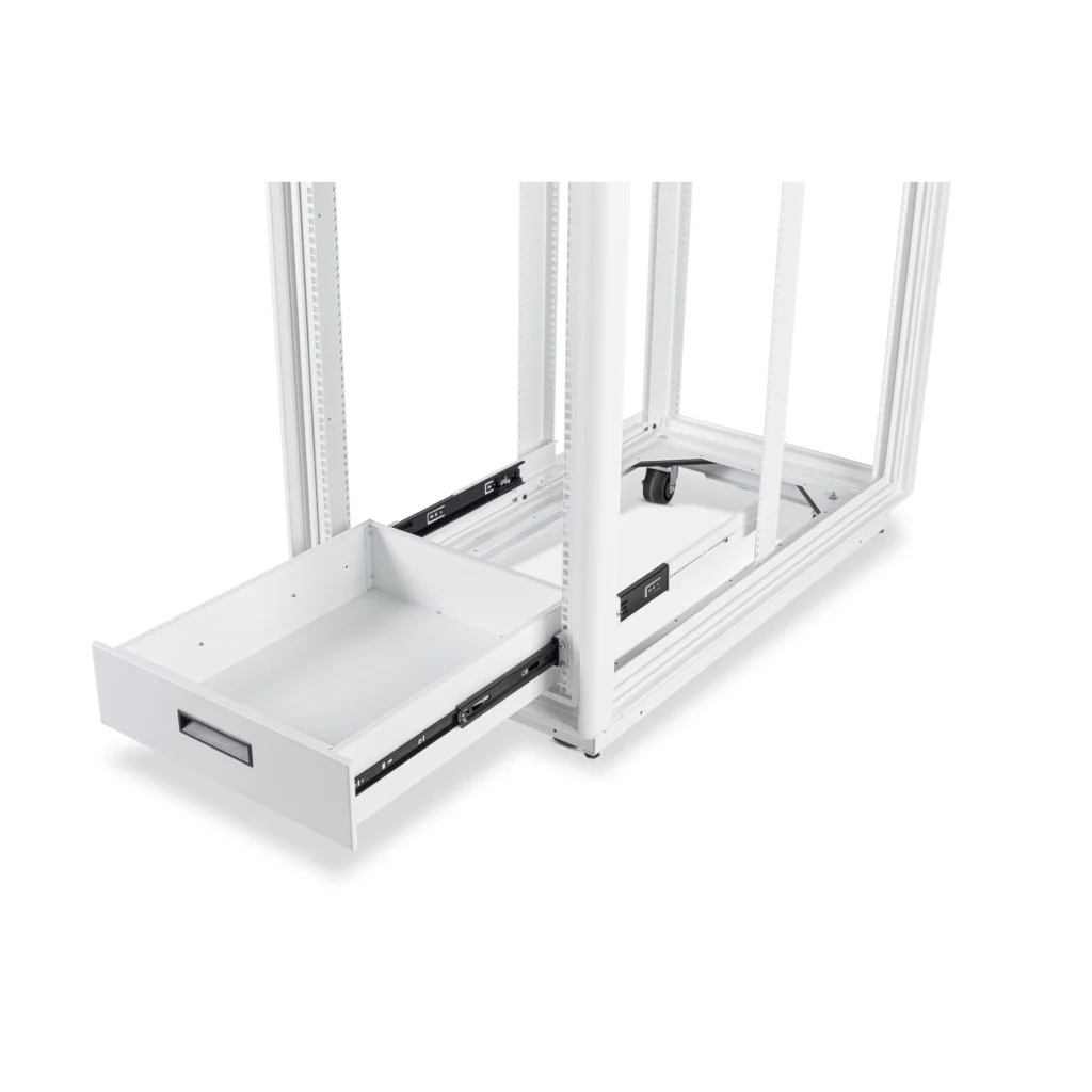 Utility Drawers are available in three standard heightsโ3U, 4U, and 5Uโand can be configured for 19โณ, 23โณ, or 24โณ rack mounting. Designed to store items such as documentation, tools, instruments, or laptops, these drawers provide convenient, organized access to essential equipment. Each drawer is mounted on smooth, durable slides, ensuring easy operation and reliable performance within any rack setup.