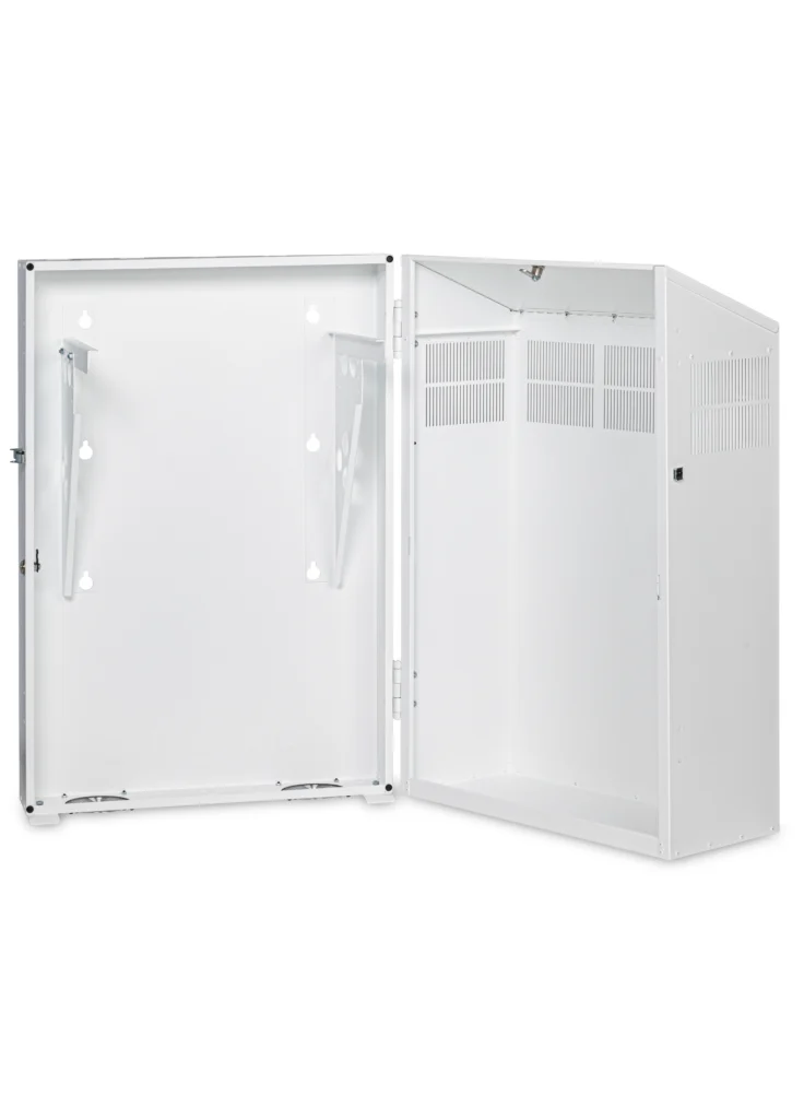 Rugged Aluminum Frame Swing-Out Wall Mount Premium swing-out design built on Martin’s patented aluminum extrusion platform. Delivers superior strength-to-weight ratio, enhanced aesthetics, and the same engineering excellence as Martin’s full-size cabinet line. For deployments where equipment value, access frequency, or environmental demands justify premium protection.